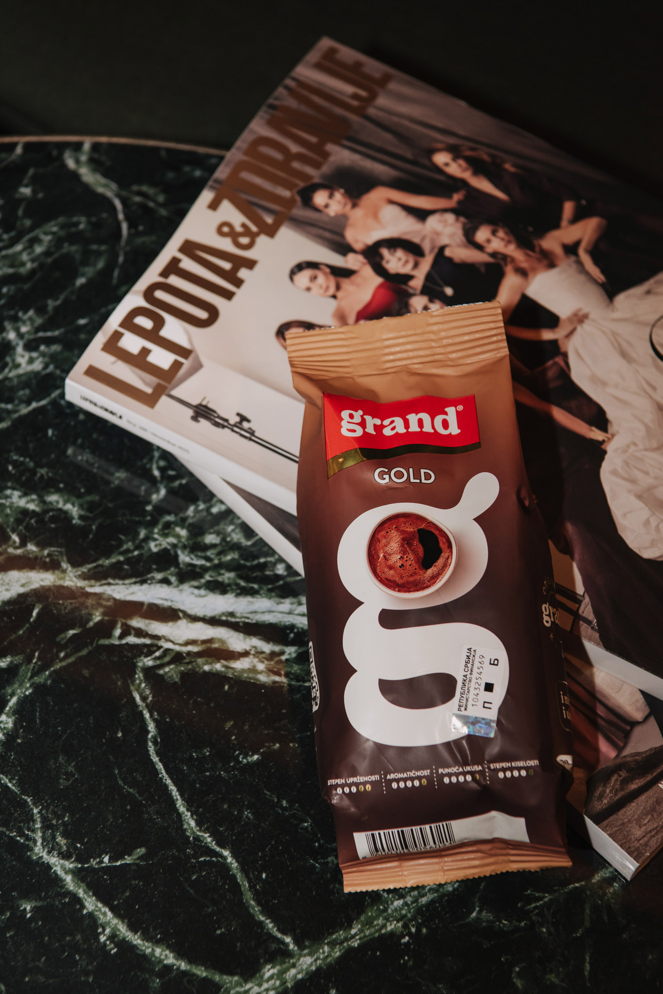 U goodie bag-u se našla i Grand Kafa Gold – spoj omiljenog mirisa i ukusa. Napravljena od pažljivo biranih, srednje prženih zrna i mlevena na tradicionalnim kamenim mlinovima, Grand Gold kafa pruža bogatu penu, pun ukus i autentičnu aromu kojoj se uvek rado vraćamo. Svojom prepoznatljivom aromom i neodoljivim i mirisom i ukusom, Grand Gold kafa je kao stvorena za najlepše trenutke razonode i opuštanja sa prijateljima i porodicom.