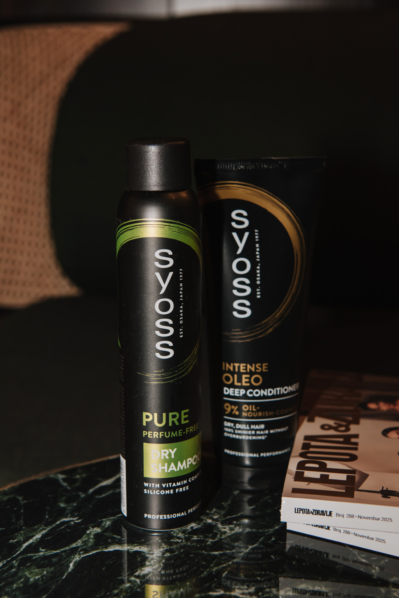 Syoss daruje Syoss Pure šampon za suvo pranje kose sa vitaminskim kompleksom – kombinacijom pantenola i niacinamida – za ojačanu strukturu kose koji pruža dugotrajno osveženje bez vidljivih ostataka nakon raščešljavanja, kao i Syoss Oleo Intense Deep Conditioner sa intenzivno negujućom formulom sa 9% Oil-Nourish kompleksom koja jača kosu iznutra. Za lepu i zdravu kosu – iznutra i spolja.
