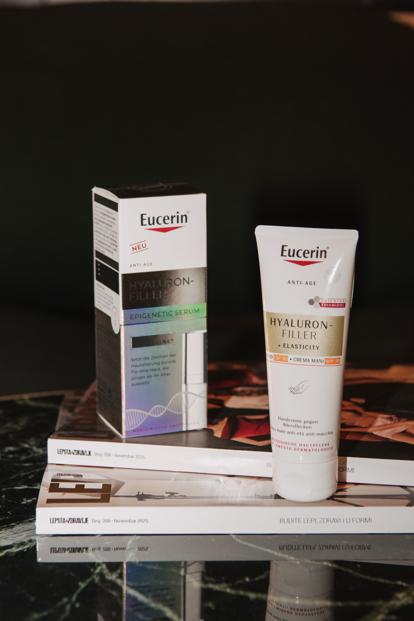 U okviru L&Z goodie bag-a našli su se i dragoceni Eucerin proizvodi: Hyaluron-Filler + Elasticity krema za ruke SPF 30 – brzo upijajuća anti-age nega koja hidrira, obnavlja elastičnost i smanjuje tamne fleke zahvaljujući Thiamidolu®, uz zaštitu SPF 30. Tu je i Hyaluron-Filler Epigenetic serum, inovativna formula sa Epicelline® sastojkom koja vidljivo smanjuje bore, vraća tonus i reaktivira gene mladosti – prvi efekti vide se već nakon četiri nedelje.