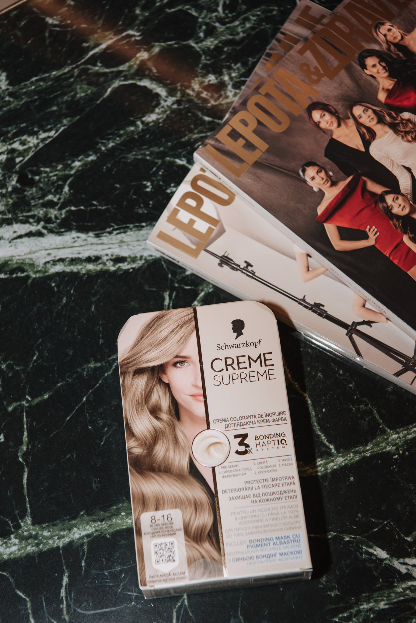 Henkel, naš dugogodišnji partner u oblasti lepote, predstavio je novu Schwarzkopf Creme Supreme liniju boja za kosu – formulu koja kombinuje profesionalni kvalitet, njegu i dugotrajnu boju. Sa do 100% pokrivanja sedih, trostepeni sistem – priprema, bojenje i nega – uključuje Bonding Pre-Serum i Bonding masku za očuvanje zdravlja i jačanje vlasi.