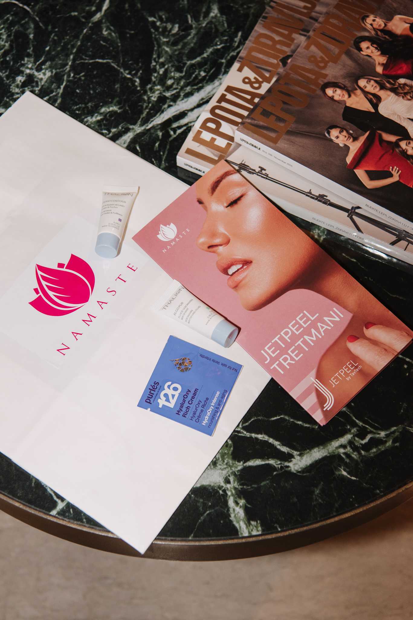 Studio Namaste, koji je otvoren 2015. u Beogradu, nudi prirodne, neinvazivne tretmane sa efektima sličnim plastičnoj hirurgiji. Kao generalni zastupnik JetPeel uređaja, koriste vrhunske aparate i prirodnu kozmetiku. U Goodie bag su uključeni sa mini proizvodima renomiranih brendova koji se koriste u salonu: Pevonia Botanica iz SAD-a poznat po organskim sastojcima i slavnim korisnicima poput Angeline Jolie i Naomi Campbell, Thalion iz Francuske sa morskim sastojcima i laganim formulacijama koje prijaju svakoj koži i Purles, francusko-španski brend koji nudi efikasne tretmane sa egzosomima, matičnim ćelijama i peptidima, kao bezbednu alternativu invazivnim procedurama.