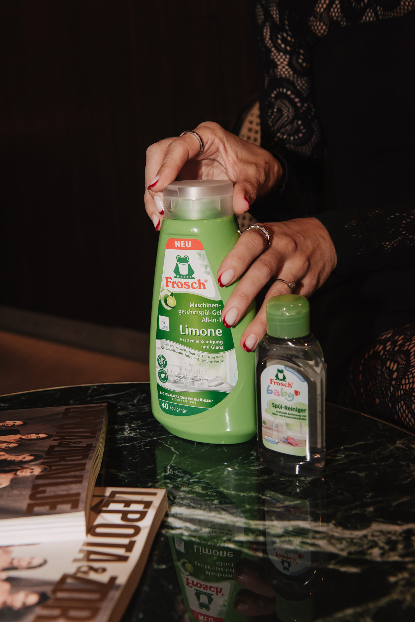 Kompanija Frosch čija se green filozofija zalaže za očuvanje životne sredine, poklanja Frosch Limone gel za mašinsko pranje sudova koje besprekorno čisti posuđe. Njegova formula sa gelom od zelenog limuna brzo se rastvara i uklanja masnoću i kamenac. Omogućava fleksibilno doziranje i idealan je za kratke cikluse.