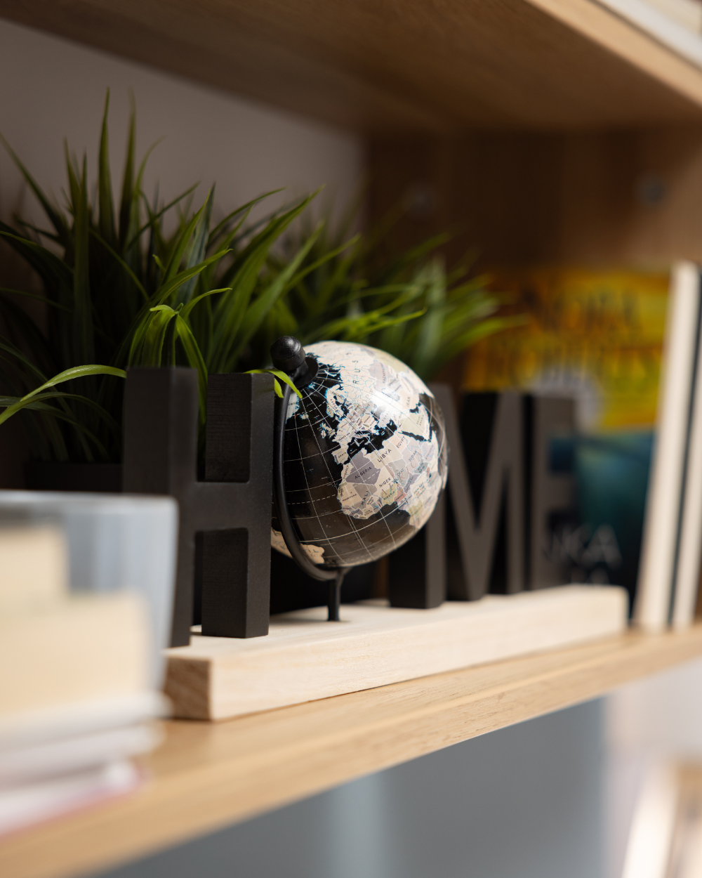Ukoliko volite da eksperimentišete, posebno se možete poigrati dekoracijom u spavaćoj sobi ili u radnom kutku, a dizajneri enterijera Forma Ideale daju vam neke predloge u nastavku. Figura globusa može zauzeti centralno mesto na vašem radnom stolu, a staklena vaza sa cvećem će biti savršen prikaz suptilne elegancije. Nova omiljena šolja za kafu u sivom tonu sa rebrastim svetlim detaljima će sigurno biti funkcionalan i dekorativan detalj u vašoj radnoj sobi. Kako biste uneli element prirode u ambijent, idealno je malo dekorativno cveće u drvenoj saksiji. Dopunite otvorene police knjigama i cvećem, a dekorativna slova ATMOSPHERA će popuniti prostor na polici i privući poglede.