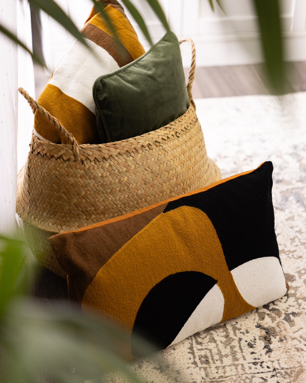 Za potpuni užitak u domu, bitno je iskoristiti prazne police ili uglove prostorija. U dnevnoj sobi je pre svega važno odabrati odgovarajući tepih – moderan, zanimljiv i estetski lepo uklopiv tepih SAGA može biti pravi izbor. Takođe, možete iskoristiti ugao dnevnog boravka ili prazno mesto kraj ugaone garniture, odnosno sofe, kako biste postavili pletenu korpu ATMOSPHERA sa dekorativnim jastucima, različitih veličina, materijala i oblika.