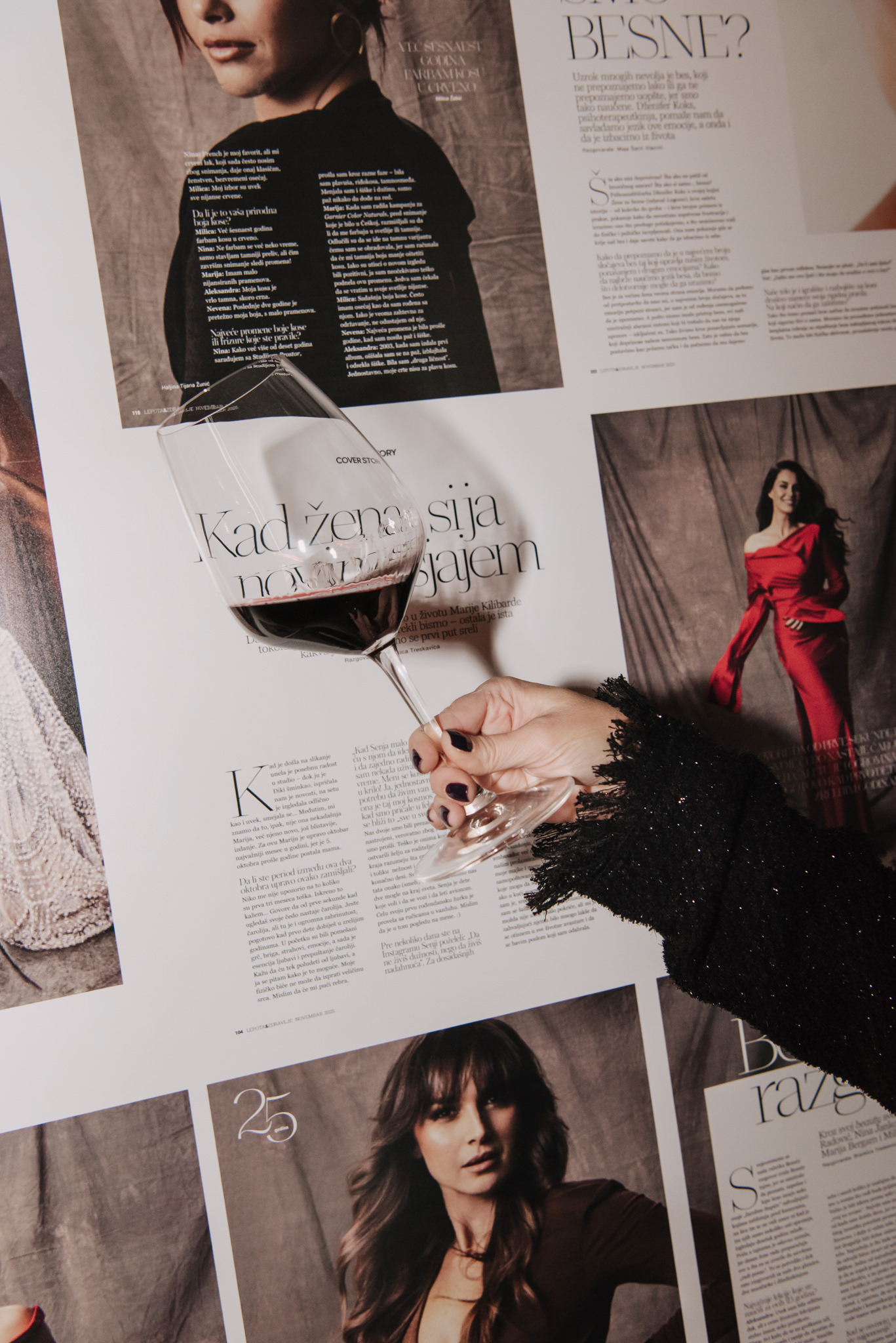 Za nazdravljanje jubileju ali i godinama pred nama, služena su pažljivo birana vina iz renomirane vinarije Zvonko Bogdan, čija filozofija spaja umetnost vinarstva sa duhom panonskih ravnica. Sauvignon Blanc, sa svojim svežim, citrusnim notama, savršeno je pratio predjelo, dok je Rosé Sec, nežne boje i voćne arome, dodatno naglasio lakoću i ženstveni karakter večeri. Posebnu simboliku nosilo je vino Život teče – elegantno, pitako vino koje svojom strukturom i nazivom oslikava duh jubileja, protok vremena i sazrevanje, kako u čaši, tako i u stvaralaštvu magazina koji već 25 godina postoji.