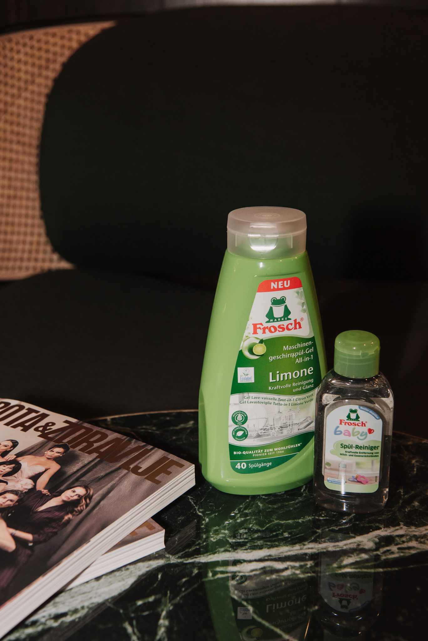Kompanija Frosch čija se green filozofija zalaže za očuvanje životne sredine, poklanja Frosch Limone gel za mašinsko pranje sudova koje besprekorno čisti posuđe. Njegova formula sa gelom od zelenog limuna brzo se rastvara i uklanja masnoću i kamenac. Omogućava fleksibilno doziranje i idealan je za kratke cikluse.