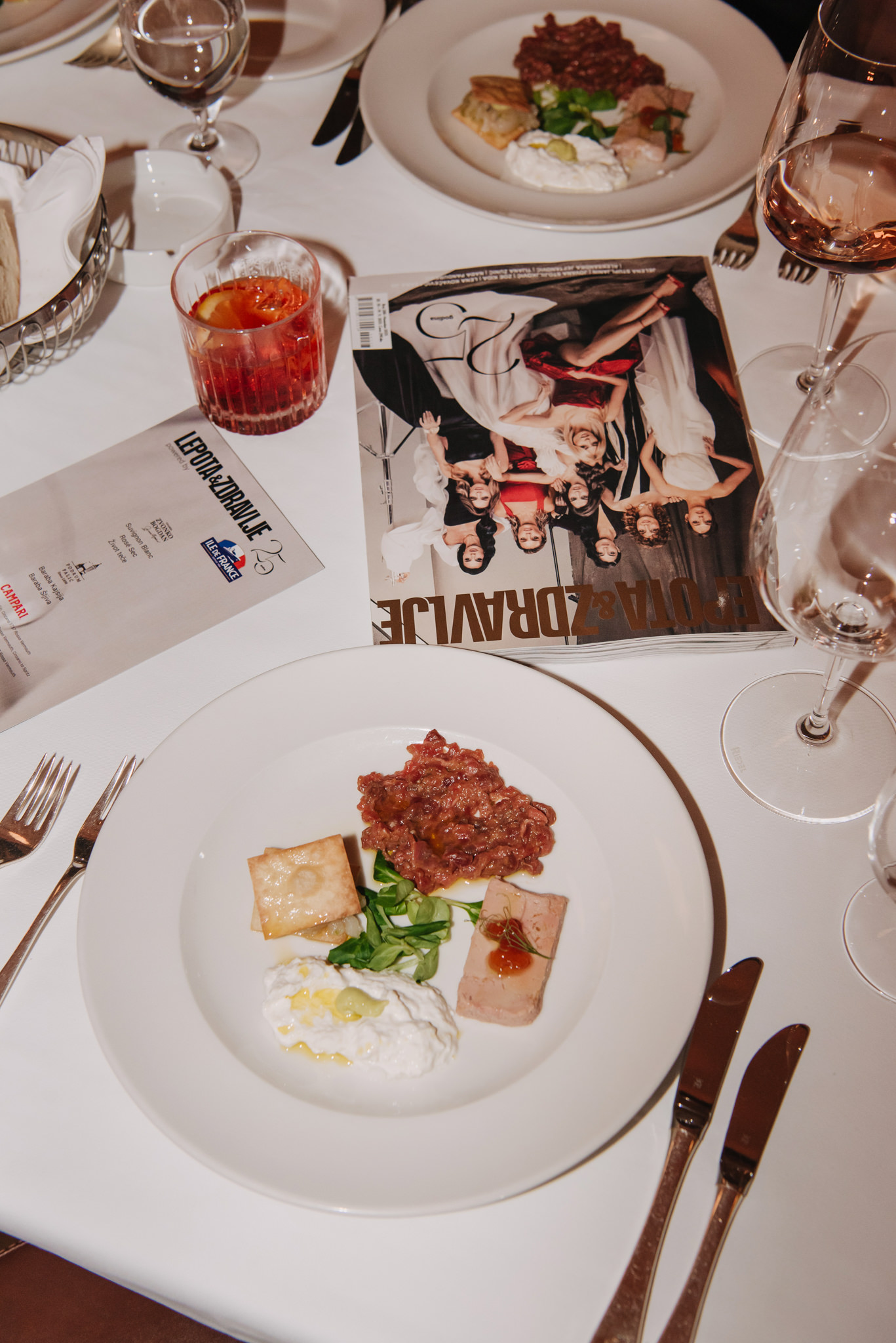 U elegantnom ambijentu restorana Prime, pažljivo osmišljen meni upotpunio je doživljaj večeri posvećene jubileju magazina Lepota i zdravlje. Intimna atmosfera i besprekorna usluga bili su savršena uvertira za gurmansko iskustvo koje je spojilo sofisticiranost i hedonizam na najvišem nivou. Veče je započelo laganim zalogajima poput burgera sa tatarom od ribe i musom od avokada, tatar biftekom i nežno obrađenom guščijom džigericom. Sledili su domaći ravioli punjeni rikotom i spanaćem u baršunastoj kremi od paradajza, dok su glavna jela Iberiko stek sa mlincima i sočni biftek u aromatičnom ulju zadovoljili i najistančanija nepca. Kruna večeri bio je bogat čokoladni desert, poslužen u savršenom balansu ukusa i tekstura, dok su Aqua Gala negazirana i gazirana voda dodale osvežavajuću notu celokupnom iskustvu.