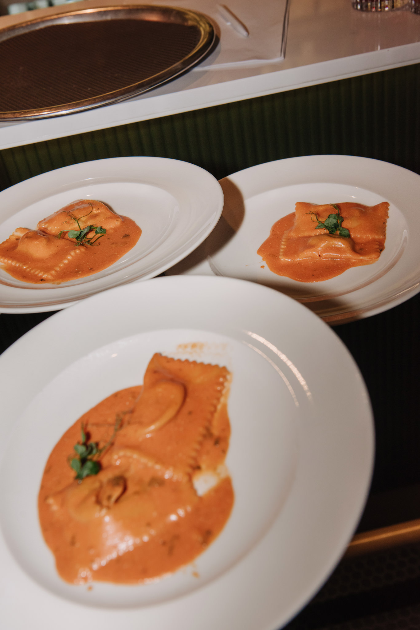Za potpuni doživljaj večeri, služeni su kokteli by Campari – klasični, promišljeni i savršeno izbalansirani, svaki sa jedinstvenim karakterom i pričom. Negroni Campari, ikona među koktelima, pripreman je u originalnoj formuli: Bulldog Gin i Cinzano 1757 Rosso Vermouth. Spoj gorko-slatkih nota i suptilnih biljnih aroma davao je ovom koktelu dubinu i ozbiljnost koja ga već decenijama čini omiljenim izborom sofisticiranih gostiju. Za one koji su želeli nešto lakše, poslužen je Negroni Sbagliato – verzija u kojoj se gin zamenjuje penušavim vinom. U ovom slučaju, kombinacija Camparija, Cinzano 1757 Rosso Vermoutha i Cinzano To Spritza pružila je osvežavajući, svetliji karakter koktela, idealan za opušteni početak večeri.