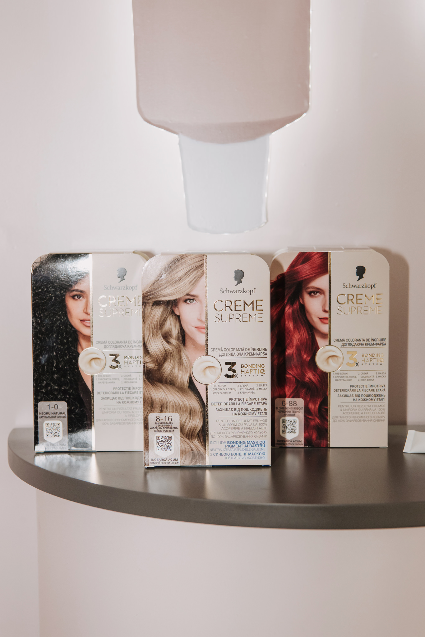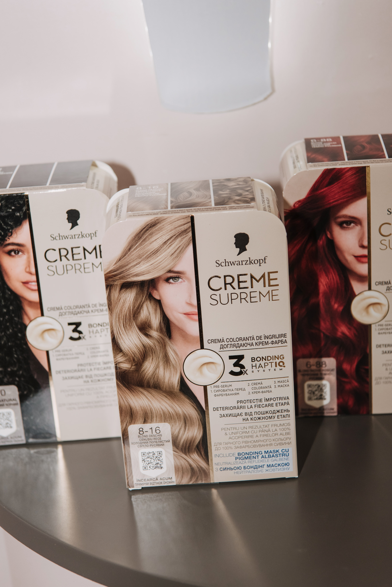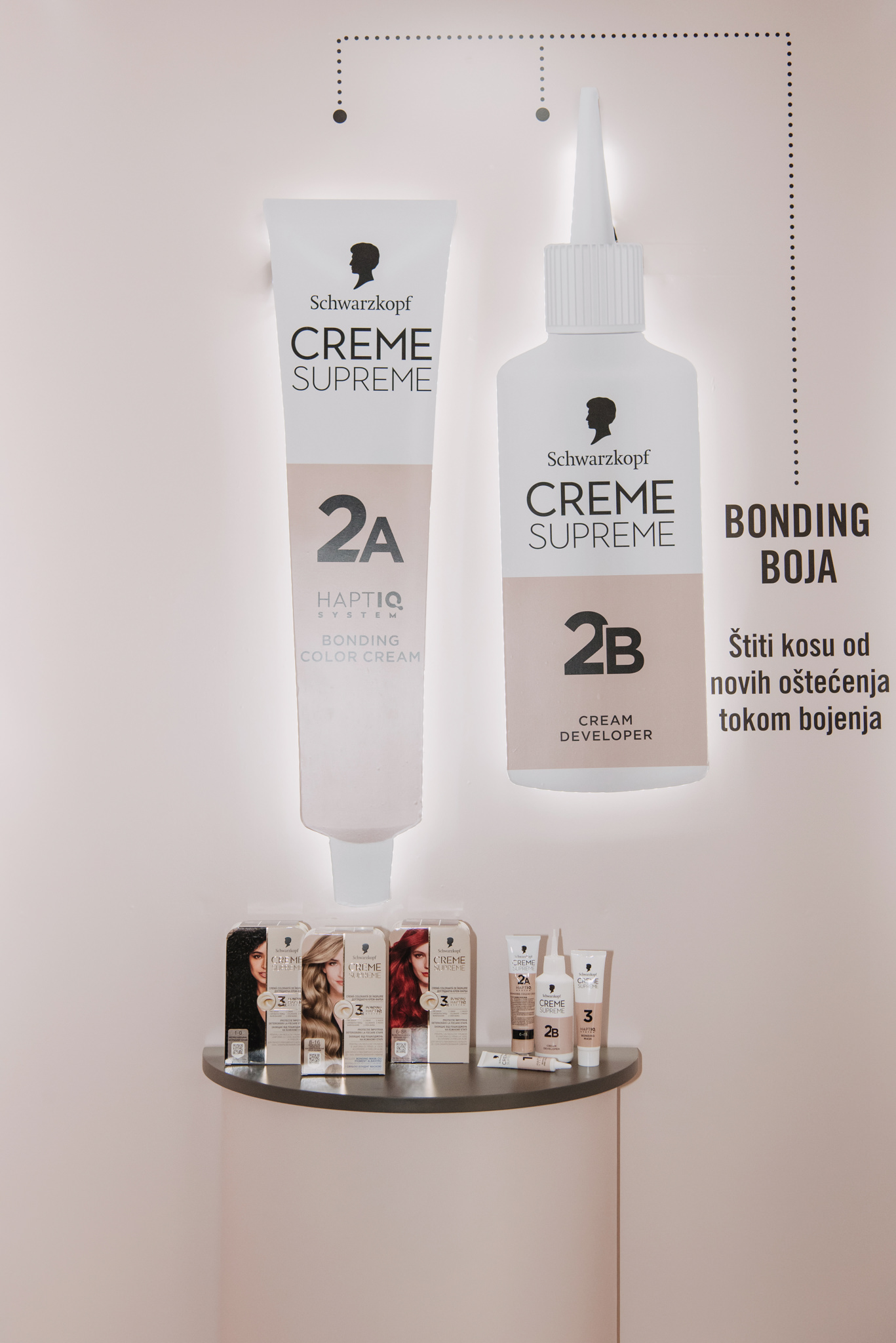 Henkel, naš dugogodišnji partner u oblasti lepote, predstavio je novu Schwarzkopf Creme Supreme liniju boja za kosu – formulu koja kombinuje profesionalni kvalitet, njegu i dugotrajnu boju. Sa do 100% pokrivanja sedih, trostepeni sistem – priprema, bojenje i nega – uključuje Bonding Pre-Serum i Bonding masku za očuvanje zdravlja i jačanje vlasi.
