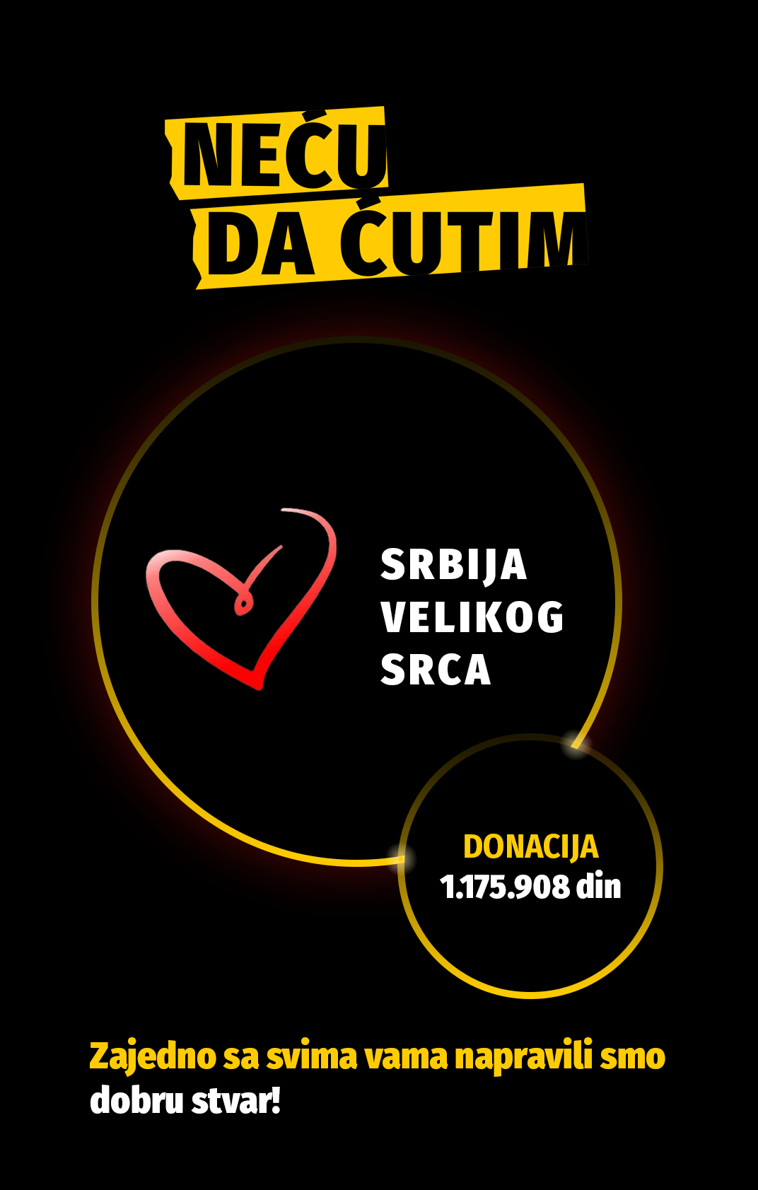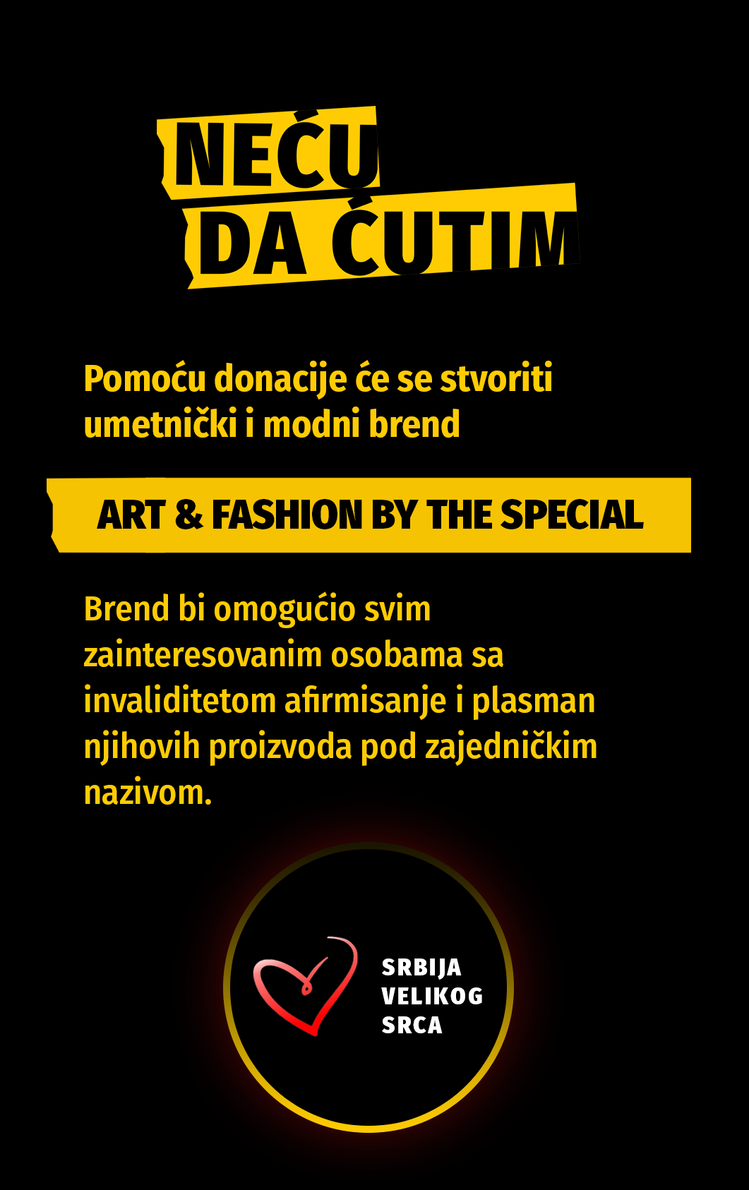 Donacija u konačnom iznosu od 1 175 908 dinara je, na predlog Argentine Gidžić, pripala humanitarnoj organizaciji za podršku osobama s invaliditetom Srbija velikog srca. Ova organizacija aktivna je u borbi za bolji i kvalitetniji život osoba s invaliditetom kako na području Srbije, tako i u čitavom regionu, a donaciju projekta “Neću da ćutim” iskoristiće za pokretanje novog projekta “Art & Fashion by the Special”.