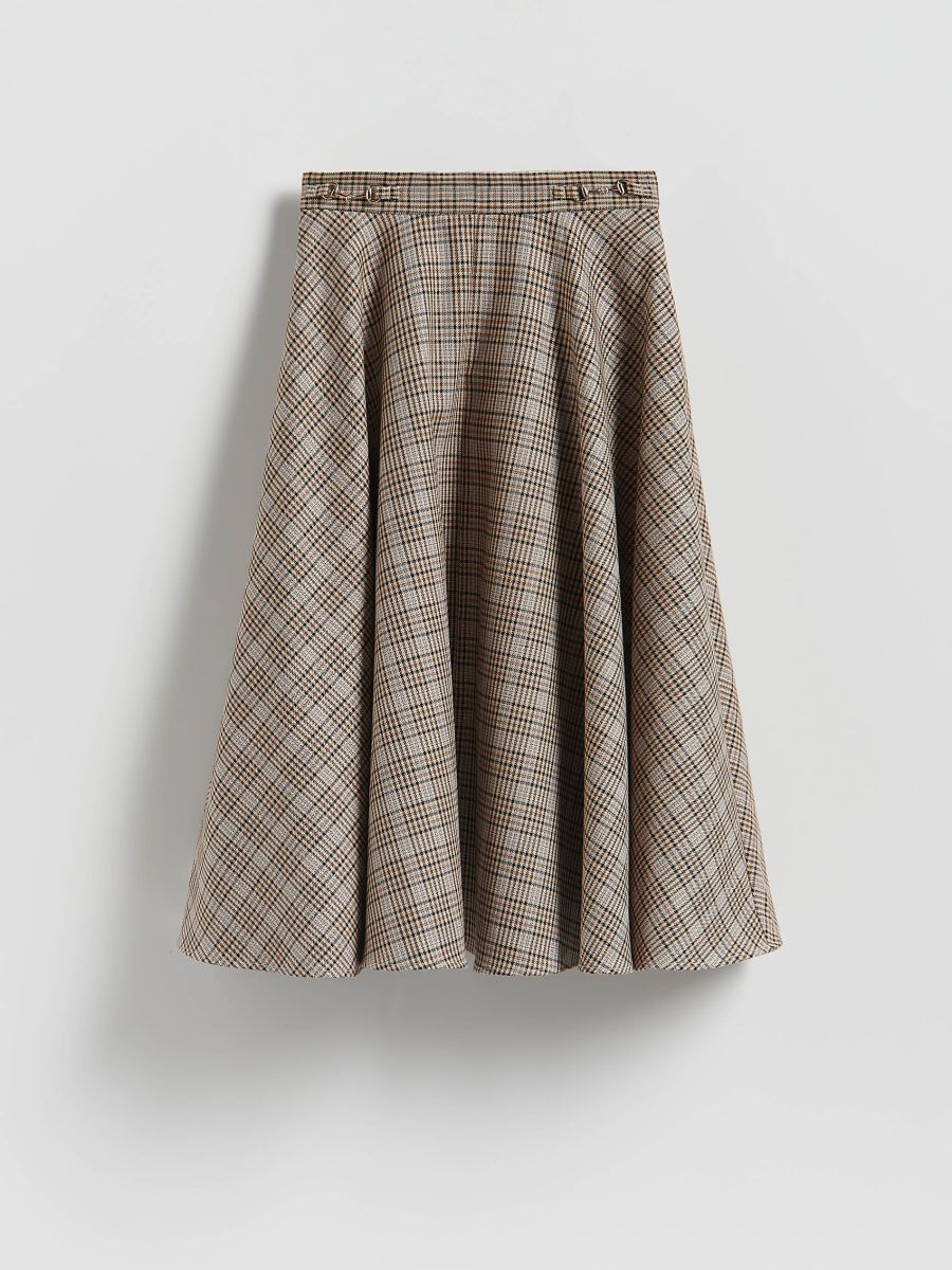 Boje celog looka leže u toplom spektru zemljanih tonova: smeđe, senf‑žute, tan nijanse i to je idealno za jesen 2025. Možete odstupiti od tog kolorita koristeći sivu, ali je važno da boje sakoa i suknje budu usklađene i u balansu. Ne morate nužno nositi coord set, naprotiv, razbijte harmoniju ili različitim dezenom ili kontrastnim krojevima.  Aksesoari kao u braon tonovima i nakit koji nije previše upadljiv, ali dovoljno karakteran zaokružuju outfit.